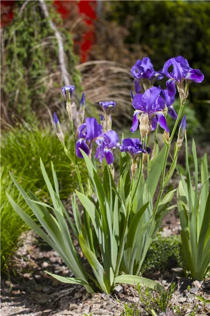 Beschreibung Die Hohe Garten-Schwertlilie Iris x germanica bringt ab Mai bis Juni blaue violette lilafarbene weiße bis gelbe lippenförmige Blüten hervor. 12 cm und wird ca. 05052021 - Romantische Bauerngarten-Feeling pur.
